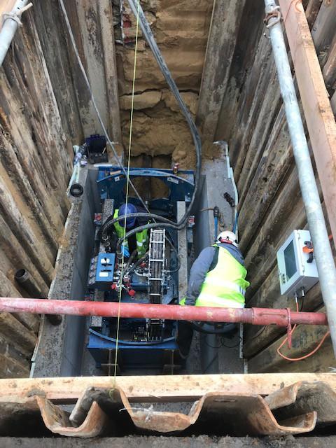 Met deze compacte persboormachine, welke we kunnen opstellen in een werkput van 2 m diameter, zullen we in staat zijn om boringen uit te voeren met lengtes tot 100 m van diameter 110 mm tem diameter 630 mm.
